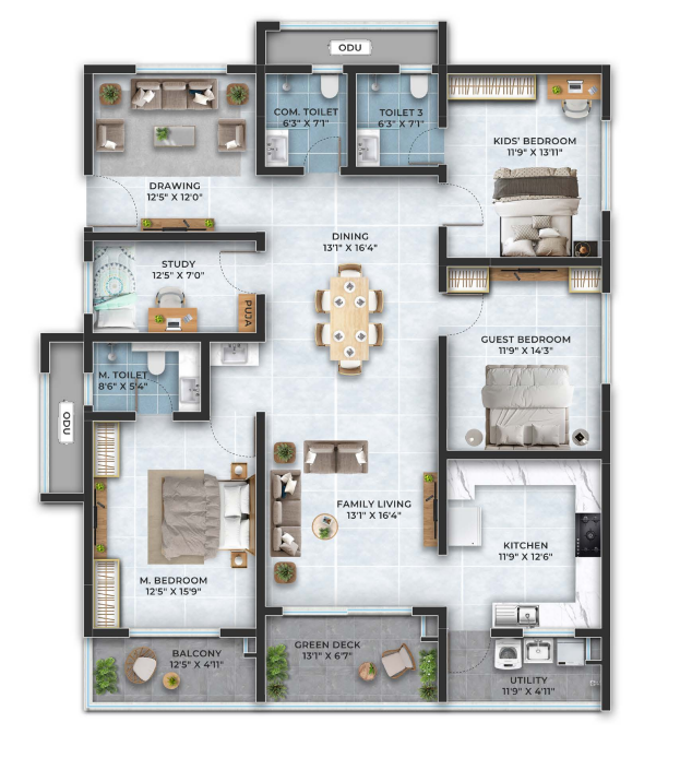 3.5BHK: 1955 – 2560 Sft