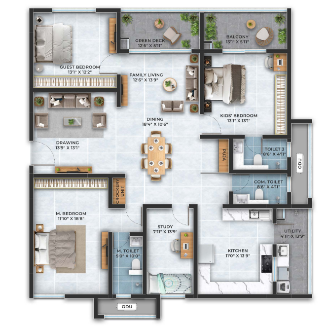 Configuration: 3,3.5 & 4 BHK Apartments